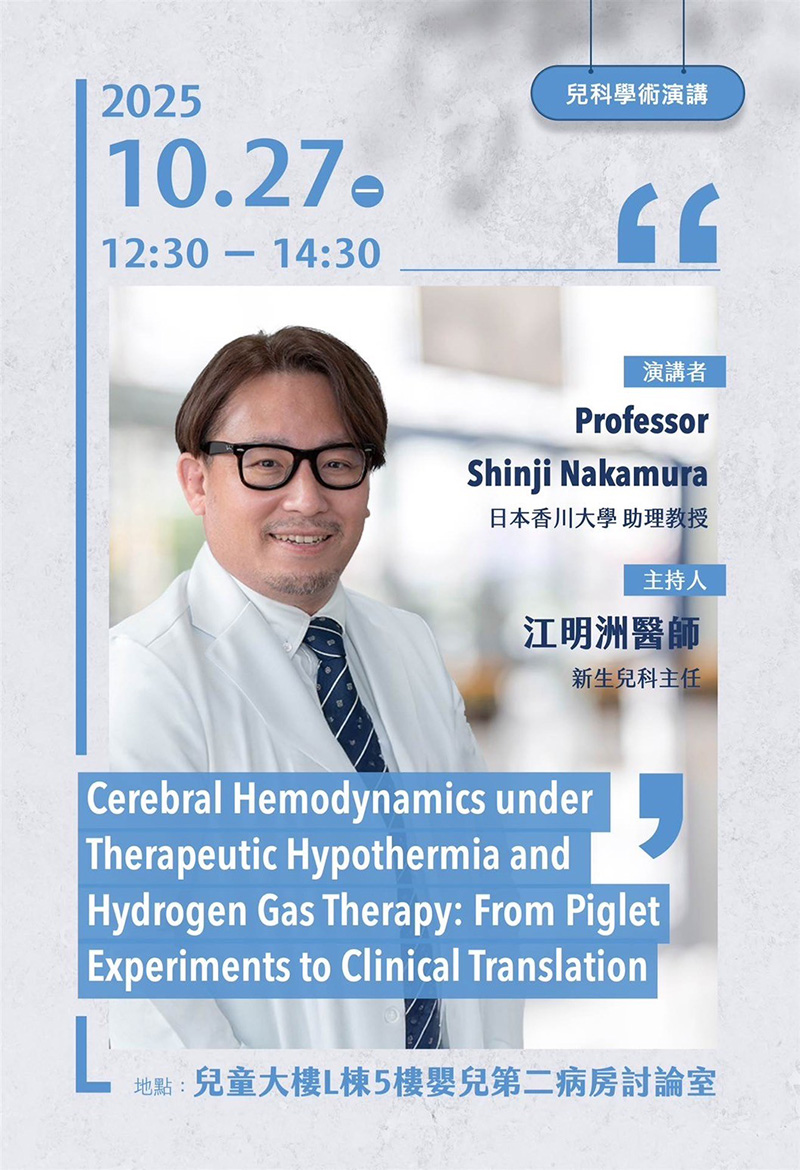 台北のChang Gung Memorial Hospital で、中村信嗣先生が以下の講演を行いました。