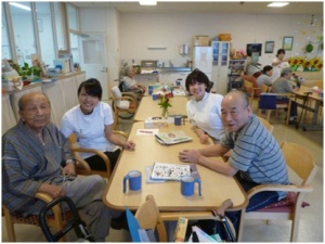 デイサービスでは入浴のサービスや、理学療法師のもとリハビリテーションをおこなえるサービスをうけることができます。みなさんとてもお元気で楽しそうでした。