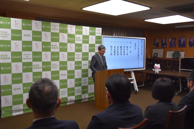 引き続き、市来センター長の概要説明の後、久米川香川県医師会長と長尾香川県健康福祉部長からご祝辞を賜りました。
