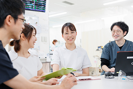 医師やメディカルスタッフと情報交換を行い、問題について対策を立てていきます。チーム医療においては欠かせない大切な時間です。看護師だからこそ気づく変化や、家族の問題などを情報提供し、共有していきます。