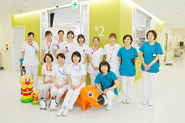 0歳の新生児から思春期までと幅広い年齢の子どもたち、あらゆる疾患の子どもたちが入院している小児病棟です。病気や怪我、障害を持っていても、その子らしく成長・発達していけるように子どもと家族に寄り添いながら、さまざまな職種のスタッフと協力して援助しています。子どもたちと家族がたくさん笑顔になれるよう、鋭い洞察力を養い、家族へのケアも大切に、信頼される看護を目指し、日々奮闘しています。私たちは「子どもたちの成長と病気を乗り越えるチカラ」を支援しています。