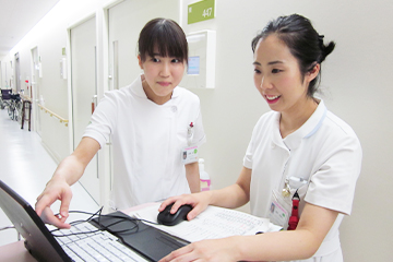 学生実習では経験豊富な臨地実習指導者が手厚く指導し、豊かな学びの場となるように全面的に支援しています。PNSのもと互いに支え補い高めあい、研究発表や業務改善企画発表などを行い、日々研鑽に努めています。