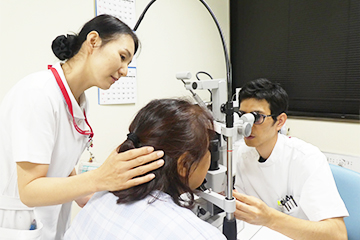東病棟6階は、眼科、皮膚科、整形外科の混合病棟です。眼科は白内障・緑内障・網膜剥離などの患者の手術を行っています。加齢に伴う疾患が多いため、既往歴のある高齢の患者さんが多く入院しています。在院日数が短いため入院時から退院後の生活を見越して情報収集や社会資源を活用できるよう調整しています。皮膚科は腫瘍、膠原病疾患、アトピー性皮膚炎といった幅広い疾患で手術、陰圧療法、軟膏処置を行い、毎日皮膚の観察やケアをしています。「患者の持つ力を信じて、その力を引き出す看護」をモットーに、患者さんに寄り添った看護が行えるようスタッフみんなで力を合わせて頑張っています。