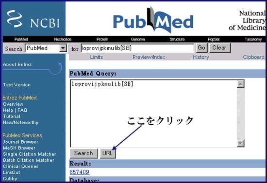 - PubMed Query が表示されるので、その下にある URL をクリックします。